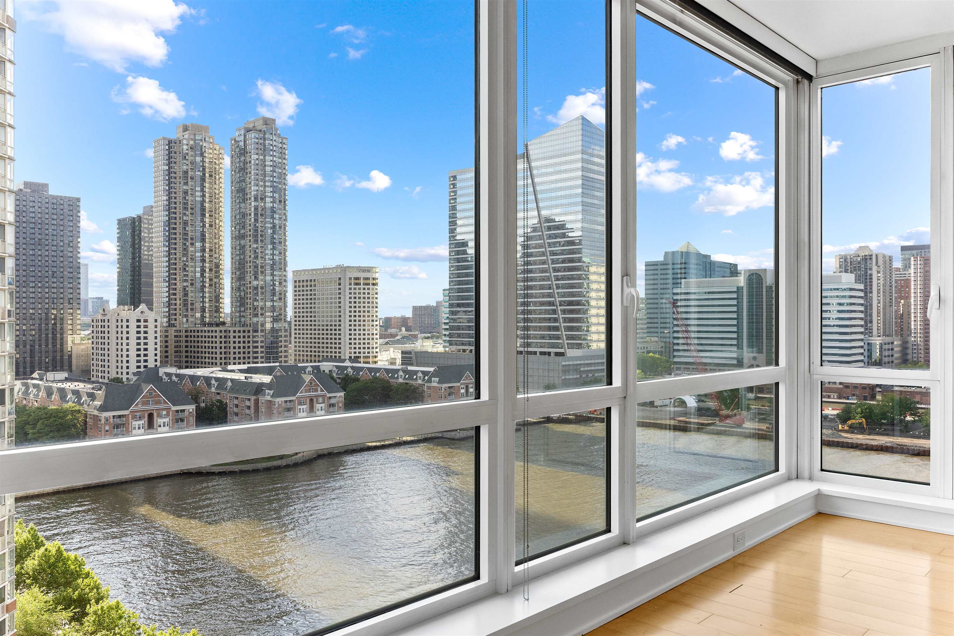 The 42-story condominium building rises high above the dazzling Hudson River on the Jersey City waterfront, 25 feet from the water directly facing Manhattan. 269 premium residences each enjoy views of the skyline stretching from lower Manhattan to the George Washington Bridge.